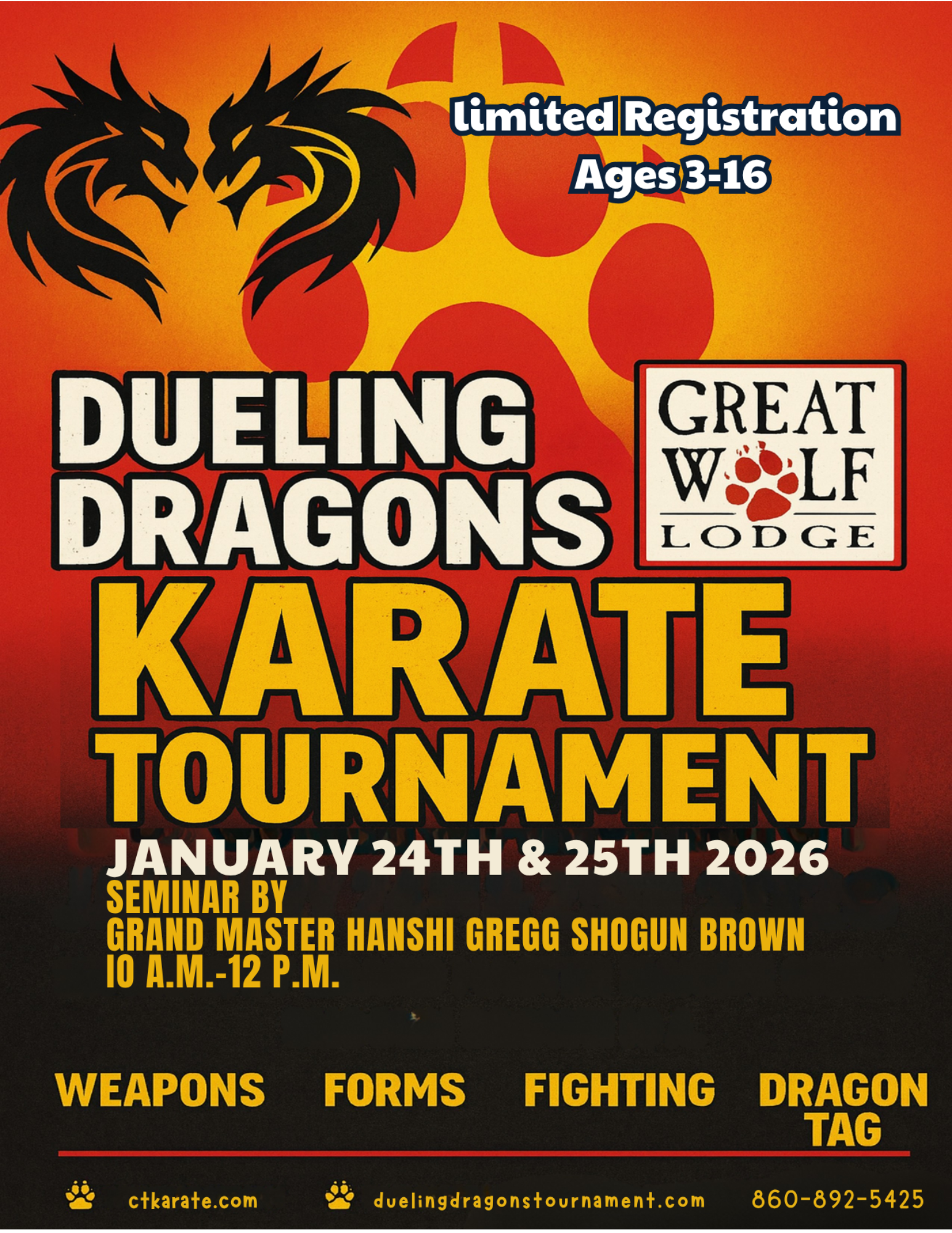 Join us for our exciting Dueling Dragons Karate Tournaments, where martial artists of all ages come together to showcase their skills and sportsmanship. Check out the details of our upcoming events below.